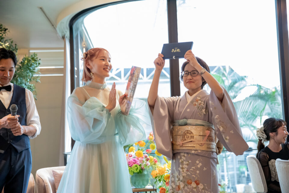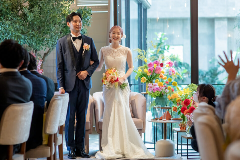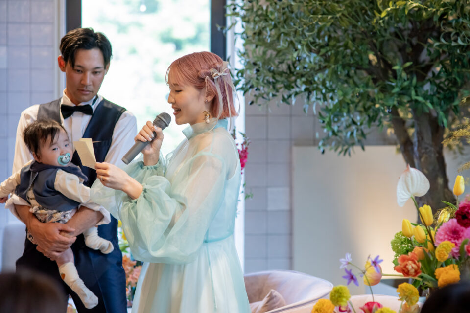 お披露目したいという想いが強いおふたりは挙式もパーティーも家族の色全開!