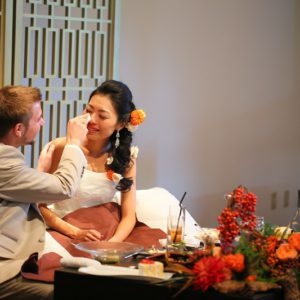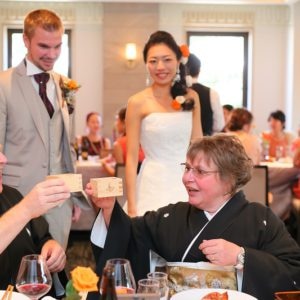 ジョナトンさん、純代子さん、ご結婚誠におめでとうございました。準備期間からテーマに沿ってご用意を進めていただき、当日は【秋】一色で統一された印象深いコーディネート空間となりましたね。また、ご新郎家ご新婦家、それぞれの皆様が会話を楽しみ、ダンスをしたりと言葉の壁を越えてひとつになっているように感じました。これからおふたりはスイスでの生活となりますね。日本に帰って来られるときはぜひサロンへ遊びに来てくださいね♪
