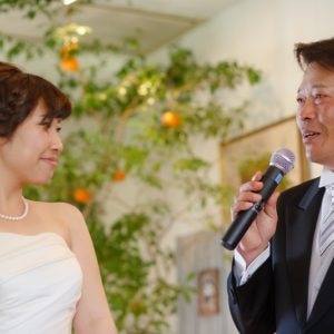 「家族や親戚のみんな、それから近所のおじちゃんおばちゃんは、あんなに小さかった二人が結婚するなんて不思議な感じだけど嬉しいね~!きっとそんな風に思ってくれるだろうな~」とお話してくださったおふたり。だったら普段のままで着飾らない、おうちにいるようなゆったりと時間が流れる空間にしよう!そんな想いで結婚式のテーマは決まりました。装飾も地元のみかん畑を感じる事ができる、どこか懐かしくあたたかな空間になりましたね。おふたりらしい陽気でスローで心がほくほくする結婚式。そっと見守りながら涙ぐんでしまうシーンがいくつもありました。次回は披露宴の様子をレポートさせていただきます。