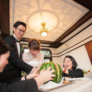 出会った時から笑顔が印象的だったおふたり。お仕事の都合で海外へご出発される前に、大好きな方々へどのように感謝を伝えるか一生懸命お考えになられていましたね。その想いも伝わり、,当日おふたりの周りにはたくさんの素敵な笑顔があり、私達スタッフも自然と笑顔になる温かく楽しいご結婚式だったと感じました!これから新しい環境へ旅立たれても、明るいお人柄と最高の笑顔で、おふたりで力を合わせて頑張ってください!
