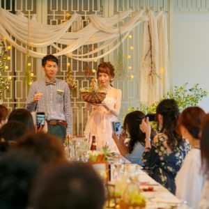 パーティーのテーマはお二人とも絵本が好きということもあり、「ぐりとぐら」の世界にしました。アイテムの可愛らしさやゲストが参加してくださって作りあげることにこだわりましたね。当日はお二人らしい、ほんわかした空気が会場に広がり、ゲストの皆さんも和やかに過ごされておりましたね!温かい周りの方を大切に、笑顔の溢れるご家庭を作っていってくださいね。