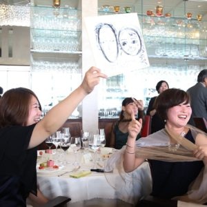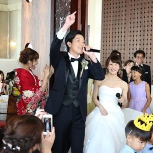 旭さん 美奈さん ご結婚誠におめでとうございました。前回前撮りのご紹介をさせて頂き、この度はパーティ当日のご紹介をさせて頂きました。ゲームでどんな事をしていくか、打ち合わせで一緒にたくさん考えて似顔絵ゲームを実施し、皆様盛り上がっていましたね。絵もおふたりにとって大切な記念になっているかと思います。入場後の歌もとても盛り上がりましたね!一日ずっと皆様の笑顔が溢れる素敵なパーティだったと感じております。ずっとずっとお幸せに♪