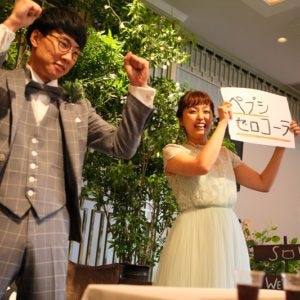 いつも楽しくお打合せをさせて頂き、本当にありがとうございました。もうお二人とのお打合せがないと思うと、とても寂しいです…。当日は、ウェディング始球式・ネコの看板・利きコーラゲームなどお二人らしさがたくさん詰まった1日でしたね!またいつか、お二人とお会い出来る事を楽しみにしております。いつでもサロンへ遊びにいらしてくださいね!