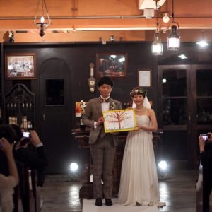 どんなPartyになるのか、当日までワクワクしてとても楽しみでした。アイディアを形にしようとして何度も試行錯誤しましたね。お二人の行動力があってこそ、この日が形になりました。お二人の笑顔があふれる日となってくれたことが嬉しいです。笑顔のあふれるご家庭を築いていってくださいね。おめでとうございました!!