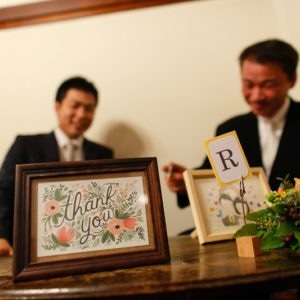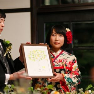 いろいろとこだわりをお持ちの陽子さん、それを温かく見守る亨さん。陽子さんのこだわりを実現しようと、デュボネスタッフと共に知恵を絞りましたが、実現出来なかったこともあって、少し残念な思いでした。ですが手先の器用な陽子さんが作られた数々の手作りアイテムに囲まれて、1部の親族・2部の友人も本当に楽しんでいらっしゃいました。私たちもとても楽しい一日でした!