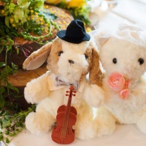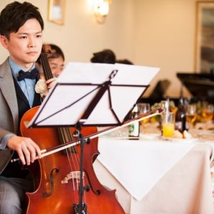 大学時代からオーケストラで演奏をされていたおふたりは、パーティーでもぜひお仲間と一緒に演奏をしたいというご希望と、ナチュラルな雰囲気がお好きというところから、『森の音楽会』というテーマでご準備を進めていただきました。