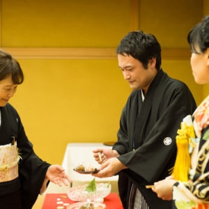 アイテム・衣装・演出すべて【和】でコーディネート★また、親族のみの会食ということで、ゆったりと過ごせる一日を演出しました。中でも香楽ならではの和菓子ビュッフェやお抹茶は大人気でした。