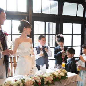 おふたりからの感謝の気持ちを込めたおもてなしと、ゲストの笑顔でいっぱいの美しいパーティでしたね。初めから、終わりまで、ゲストにおもてなしすること、ゲストが楽しむことを考えていたおふたり。お打ち合わせの時から、お子様を楽しませるためには、どのようにしようかな、ゲストをおもてなしするには、何をしようかなとまわりを思いやれるおふたりに、幸せが訪れ続けることを、願っております。