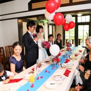 当日はご親族との温かい挙式・披露宴、ご友人とのにぎやかで楽しい披露宴と、とても素敵な一日になりましたね。お二人が創り上げた【レトロポップな空間】、スタッフからもとても好評でしたよ!!