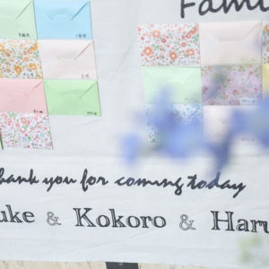 この度は本当におめでとうございます!毎回お打ち合わせでお会いできるのがとてもとても楽しみでした。スタッフの中でもこころちゃんは大人気でした!おふたりにはたくさんの手作りアイテムをご用意いただき、それぞれのお力を合わせてアイテムを完成させていくお姿が印象的でした。当日はゲストの皆様にとっても思い出深いパーティーになったのではないでしょうか。またぜひサロンへ遊びに来てくださいね!スタッフ一同楽しみにお待ちしております。