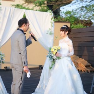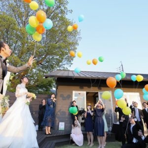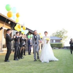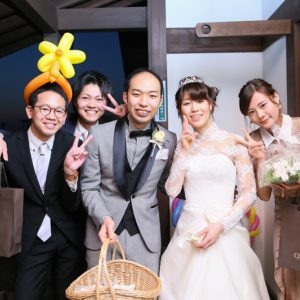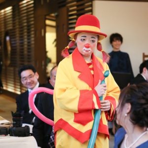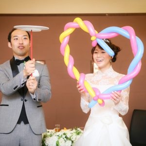 会食会と1.5次会の【2部制パーティー】でした。1部目はご親族のみの会食会で、おふたりの生い立ちを紙芝居でご紹介する演出を、2部目はご友人をご招待しての1.5次会のパーティーで、バルーンを使って動きのある演出やピエロが会場を盛り上げてくださる演出を取り入れる等、長良川の景色を横目に皆様に楽しんで頂きたい!という想いが溢れたおふたりらしいパーティーでした。