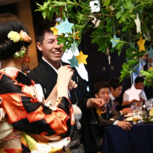 純也さん いつかさん 本当に本当におめでとうございました。おふたりと考えた「願いが叶いますように・・・」おふたりのお互いを思いやる願いと、おふたりからゲストに対する願い・ご両親からの願い・ご友人への想い・いろいろな願いが愛情となって溢れた一日になりましたね。星をモチーフにおふたりの想いがゲストの方に伝わって何とも言えないほんわかした雰囲気を作りだしておりました。おふたりの願いが叶ったのではないでしょうか。私もおふたりが温かい家庭を築かれていくことを願っております!!またサロンにも遊びにきてくださいね。