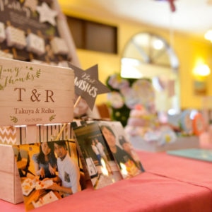 拓也さん 伶佳さん、この度はおめでとうございます。おふたりとのお打ち合わせはいつも笑いの絶えない楽しい時間でした。激すっぱドリンクを試飲させていただいたときのあのすっぱさ...まだしっかり覚えてますよ!前日に作ったバルーンの飾りつけや、たくさんご用意くださったお出迎えのお写真たち。おふたりにはお忙しい中で、ゲストの皆様が喜んでくださるようにたくさんのアイテムをご用意いただきましたね。そんなアイテムの一つ一つから、ゲストの皆様を思うおふたりのお気持ちが伝わってきました。また是非、サロンにも遊びにきてくださいね!!おふたりの幸せを心よりお祈りいたします...♡