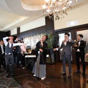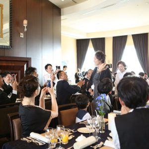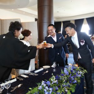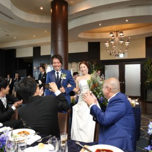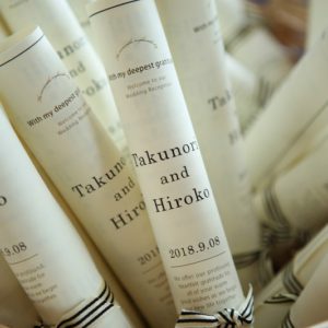 拓典さん 裕子さん ご結婚本当におめでとうございました。ゲストの皆様からの映像の見え方など、細部にまでこだわりをもって考えられた一日でしたね。様々な部分でこだわった分ご準備は大変だったかと思いますが、その分ご親族ご友人問わず全てのゲストの皆様におふたりらしさを感じて頂けたかと思います。またお近くにお越しの際は是非遊びにお越し頂けます事お待ち致しております。