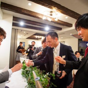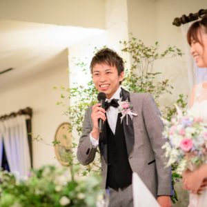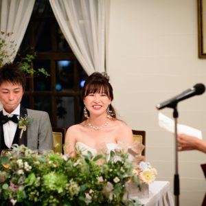 この度は誠におめでとうございました。初めましてのお打合せからとっても元気で楽しいおふたり。私も毎回おふたりから元気をもらっていました。エスコートカードやDVDなど手作りのお品物も沢山あり、お仕事との両立も大変だったかと思いますが、頑張って頂いたからこそ、当日はおふたりらしい笑い溢れる素敵なお時間になりましたね。ゲストの皆様とおふたりの笑顔は今でも浮かんできます。また楽しいお話しもお伺いしたいので、是非サロンへも遊びにいらしてくださいね!