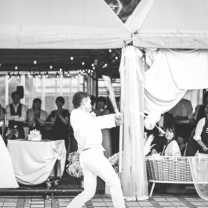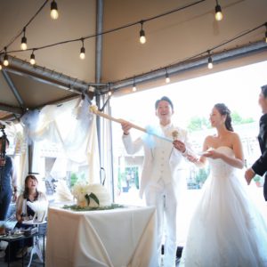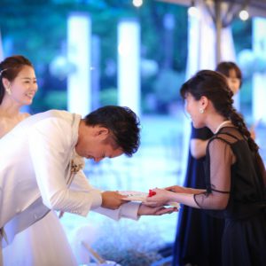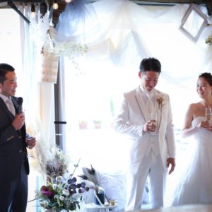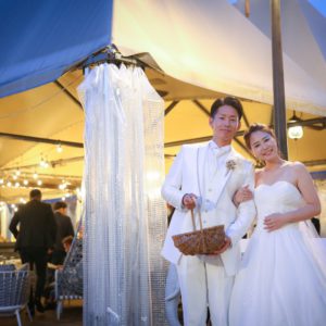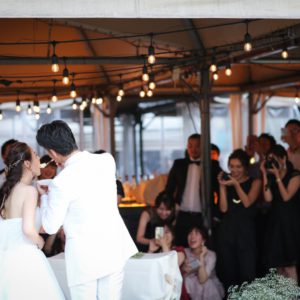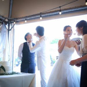 2部制でこだわりの手作りアイテム等ご準備も色々大変だったかと思いますが、当日素敵なパーティーとなりゲスト皆様もとても楽しんで頂いていたと感じております!楽しそうにゲスト皆様とお話をされているおふたりを近くで見ることが出来て私も幸せでした!内緒で計画してくれたサプライズバイトも嬉しくて涙をこらえるのに必死でした(笑)私の一生の思い出です!