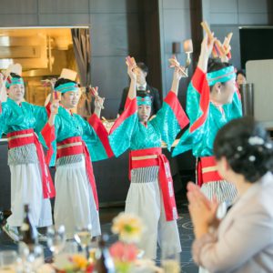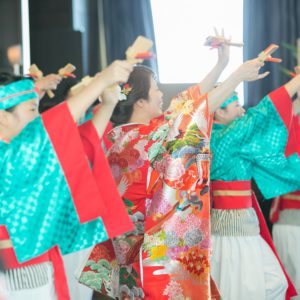 おふたりの「とにかく笑って楽しんで頂きたい!」というお気持ちがゲスト全員に伝わる、すごく勢いのあるとても楽しい空間だったと感じております!!智子さんの和装姿での踊りは本当にかっこよく圧巻でした。これからもおふたりらしく楽しく明るい家庭を築いてくださいね。ずっとずっとお幸せに。