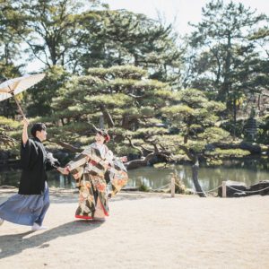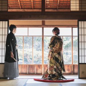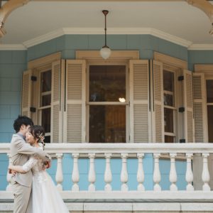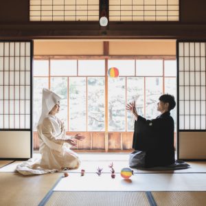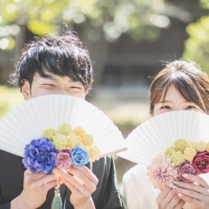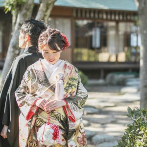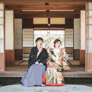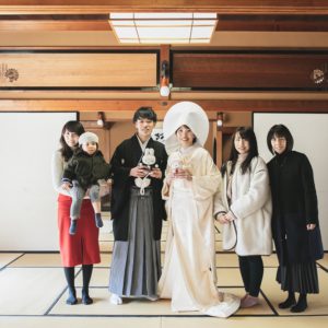 ゆっくりお写真のお時間を取られたいと、前撮りをされたおふたり。和装と洋装あわせて4着をお色直しされました。途中、ご家族も見に来ていただいて、たっぷりお写真のお時間を取られました。
