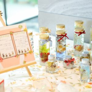 手作りの石鹸とハーバリウムもとっても素敵でゲストの皆様にもご満足頂くことができ、ゲストの皆様を大切にされているおふたりの優しさが溢れるパーティでした。