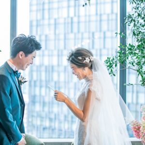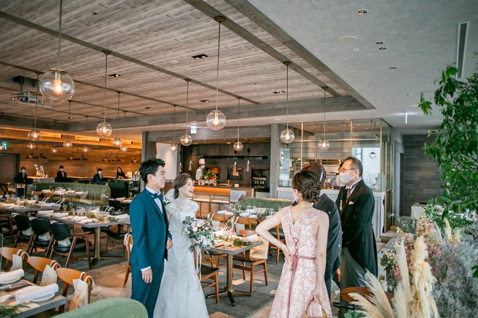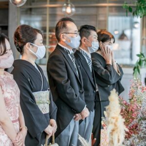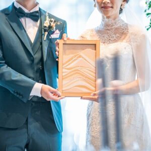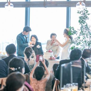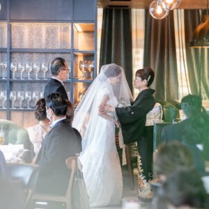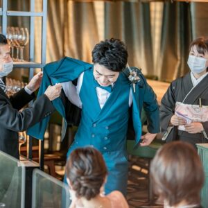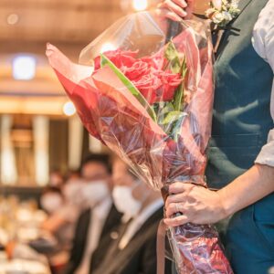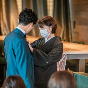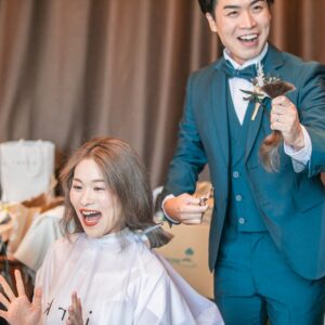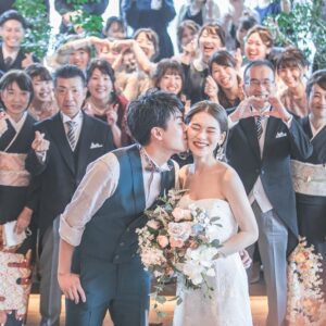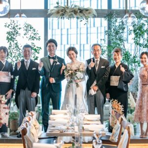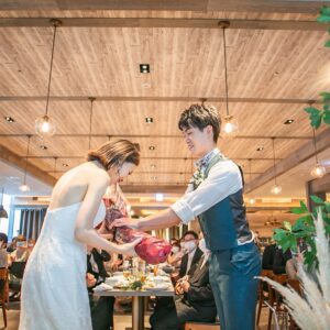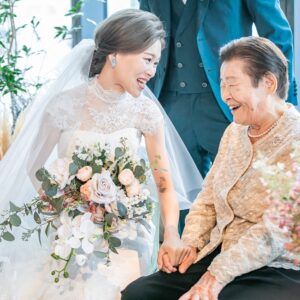 親孝行の第一歩としてご家族とのファーストミート、挙式ではジャケットセレモニーやベールダウン、おばあちゃんへのサプライズバイトなど、ご家族にも沢山ご活躍いただきました。また、お色直しではロングだった髪をバッサリヘアカット!!まさかの大変身に、ゲストもびっくりで会場がざわつきました!!ゲストひとりひとりへのメッセージカードを忍ばせたり、チェキを使ったベストスマイルショー、新郎新婦様のお互いへのサプライズなど、とにかく『ありがとう』が詰まった1日でした!