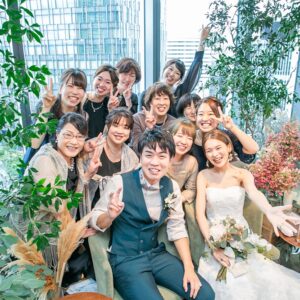 普段は恥ずかしくて言えない「ありがとう」を伝える日、そしてゲストには”映画を見終わった時のような気持ち”で帰ってほしい。そんなおふたりのパーティーテーマは『Thanks giving day!!』 結婚式というこの日だからこそ、全員と言葉を交わし感謝の気持ちを伝えました。