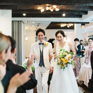 関東在住のおふたりとは、お会いできる時間も少ない中、お電話やメールなどでたくさんの想いを共有させていただき、遠方在住であることを忘れてしまうほど濃厚な時間を過ごさせて頂けたように思います。 ご参列のゲストのみならず、私どもスタッフへのお気遣いの気持ちが本当に嬉しく励みになりました。
