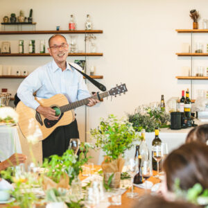 三重県のVISONでの初めての結婚式。お天気が心配でしたが、当日はなんと快晴♪ゲストのみなさまからの想いがおふたりに届けられ、愛にあふれた空間と時間となりました。いろんなことがあって迎えた結婚式という日。それぞれの特別な想いが重なり合い、笑顔の溢れる時間。お父さまがこうしてギターを弾いて歌を歌えることも、今日という日を大切な人と迎えられたことも、すべてが特別。この日のためにおふたりもウクレレを練習して、みんなで歌えて、笑顔溢れるかけがえのない時間に。心からおめでとうございます♪