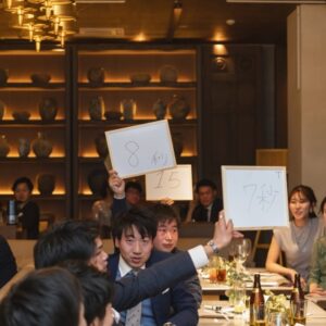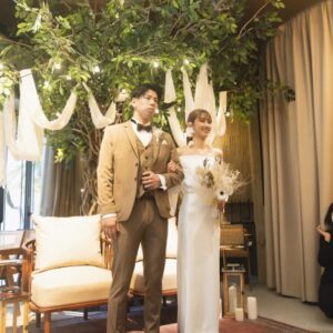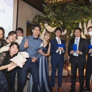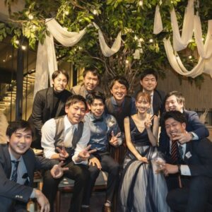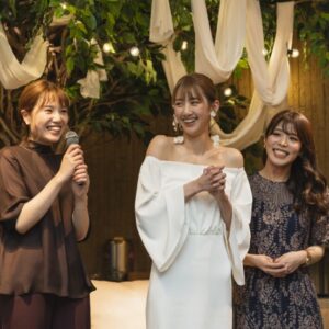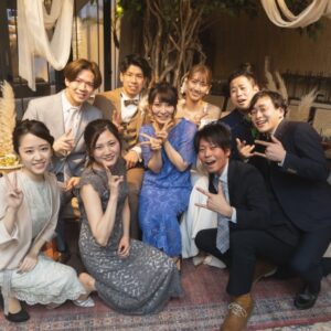 誰も置いていかないパーティーにするため、一緒にあーでもないこーどもないとお話ししたことを覚えております。当日はお二人思い描いたパーティーになりましたね。ワイワイ、ゲストも楽しそうな表情が印象的です。