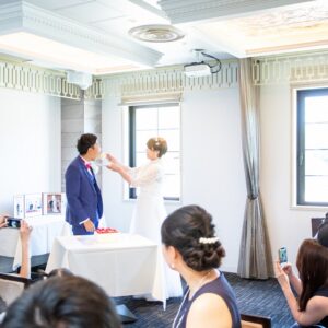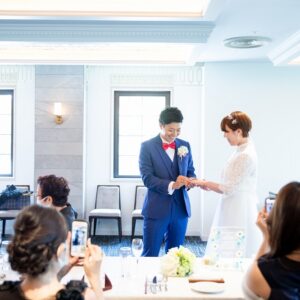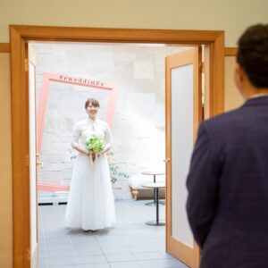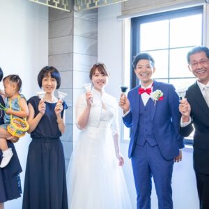 終始、お父様が目を細めておふたりの姿を見ていらっしゃるのが印象的でした。近い距離だからこその雰囲気・空間ができたと思います。とても心地よい、アットホームで温かな時間でした。