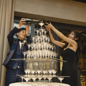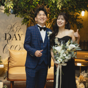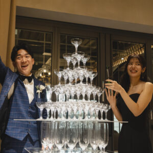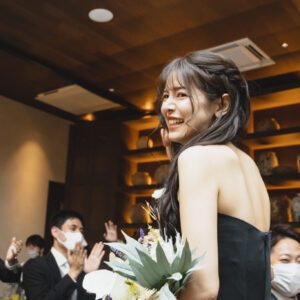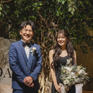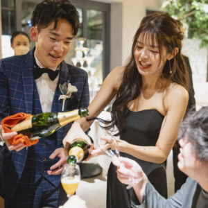 この度は誠におめでとうございました!ゲストの皆様に楽しんでもらいたいというおふたり、シャンパンタワーで盛り上げたりおふたりがゲストの皆様にシャンパンを注いで回ったりと、とてもゲストの方も楽しんでいただいているお姿を見ることが出来ました。おふたりらしい、笑顔溢れてとても楽しい空間で私たちもそのお姿を見ることができ幸せでした!これからも笑顔溢れる素敵な家庭を築いていってくださいね!