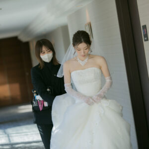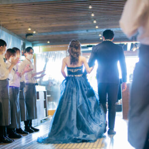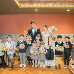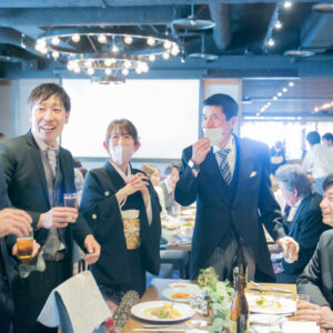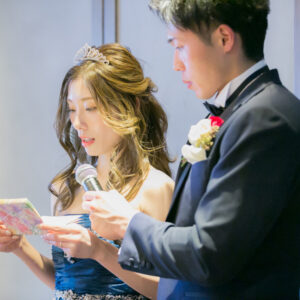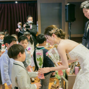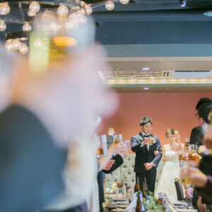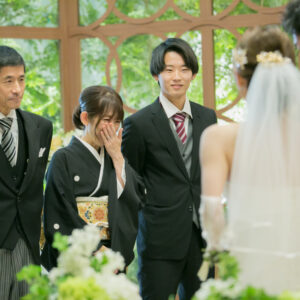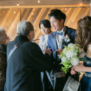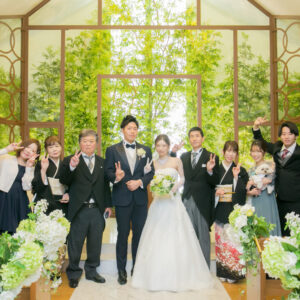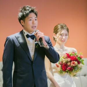 ご家族が気兼ねなく話しができる空気感を作りたくて家族の挙式とパーティーを別の会場にされたお二人。ご家族にしか見せない表情をお式でされていたのが印象的でした。お二人の周りの皆さまを大切にされているお気持ちが伝わったのではないでしょうか。パーティーではう友人も加わって、雰囲気もワイワイ「ありがとう」が伝えられましたね!お二人の笑顔があふれる1日になって本当に良かったです!