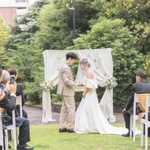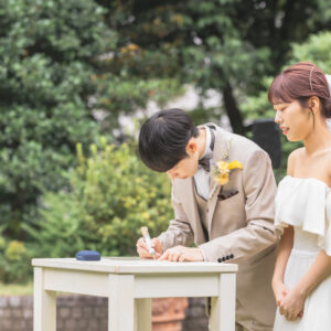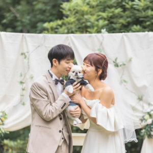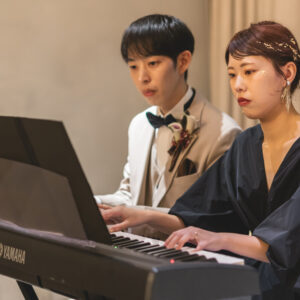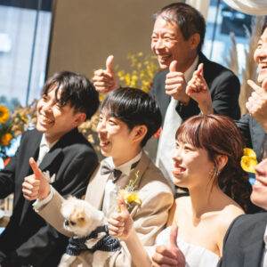| Hさん Mさん | この度は誠におめでとうございました♪ この日の為にピアノの練習をされていたことを知っていたからこそ、おふたりの演奏はとても感動しました。皆様にもおふたりのお気持ちはしっかりとお届け出来たと思います。 しるしくんも皆の癒しでアイドルでしたね!とても可愛かったです★ これからもおふたりらしく、笑顔溢れる家庭を築いてくださいね。いつまでもお幸せに・・! |