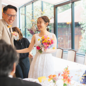 | この度は本当におめでとうございました!! とても良いお天気で、ゲストの皆様とゆっくり過ごし、笑顔溢れる本当に心温まる1日でしたね。 こだわりのウェルカムスペースも素敵でした。^^ いつまでもお幸せに♡ |