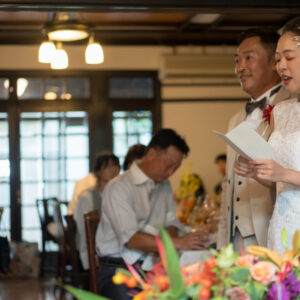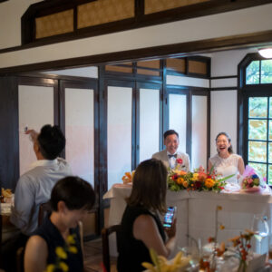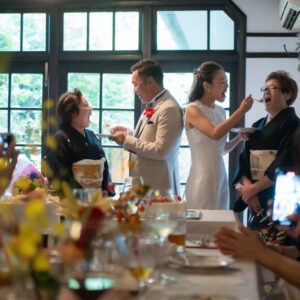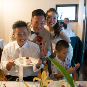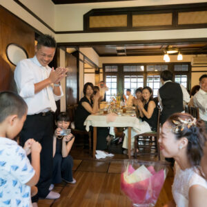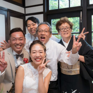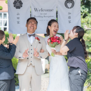 | 大切なご家族、ご友人に囲まれた一日 | 太陽のような明るいおふたりの素敵なお人柄に、いつも元気をいただいておりました。そんなおふたりの周りを囲んでいらっしゃる大切なご家族・ご友人の皆様方とのお時間をご一緒できましたこと、本当に嬉しく思います。いつまでもおふたりらしく、明るく楽しい家庭を築いてくださいね^^末永くお幸せに! |