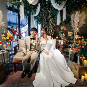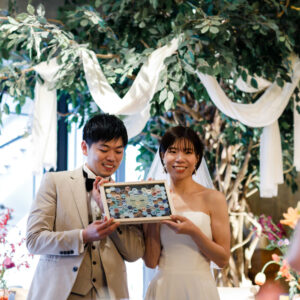| お二人らしい形で感謝をゲストに伝える1日 | こんにちは!結婚式からあっという間にお日にちが過ぎましたが、お元気でお過ごしでしょうか?準備を進めていく中で不安なことや、ゲストからの期待に戸惑うこともあったかと思います。それでもお二人のお気持ち、テーマに沿った1日を一緒に作り当日を迎えた時、ゲストからの反応を見ていてお二人の想いが伝わったと感じ、私まで幸せでした^^お子様の20歳の誕生日が今から楽しみですね♪末永くお幸せに! |