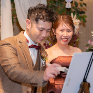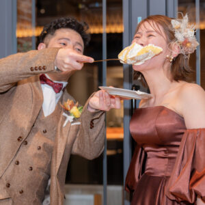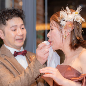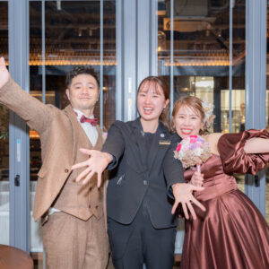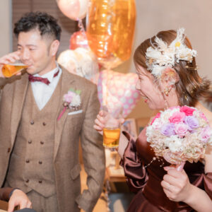 | スタッフより | 智之さん 歩さん この度は誠におめでとうございました! とにかくいつも笑顔で元気なおふたりとの時間は本当に楽しかったです!当日の皆様の笑顔を見て、おふたりの想いはしっかりと届いていると感じました。 これからも末永くお幸せに…♡ |