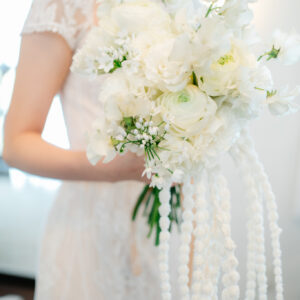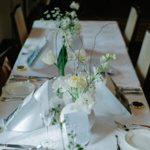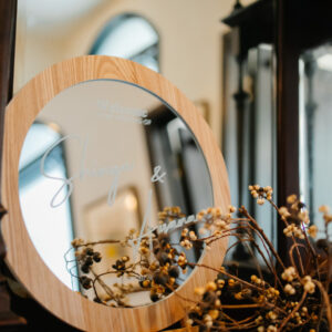 当たり前の固定概念を無くし、純粋にゲストとの時間を大切にしたいという想いから、おふたりの高砂は席としてではなく、フォトスポットとしてご用意しました。常にゲストと近い距離で過ごすことができ、またゲストインタビューもメインではなく、ゲストのお隣でお話をお聞きし、心の距離がグッと近くなる時間を過ごしました。