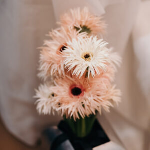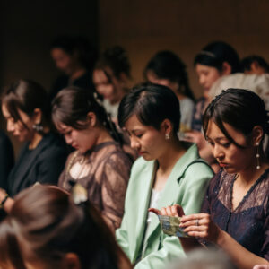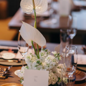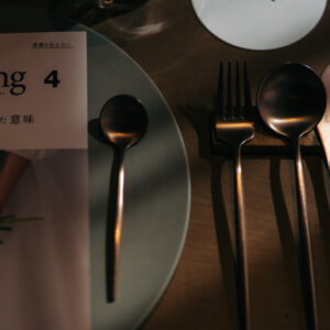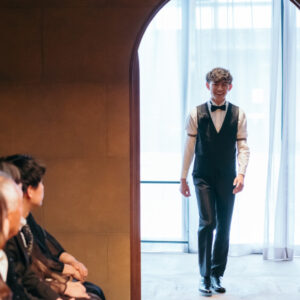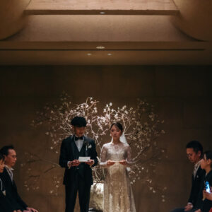 おふたりの想いを叶えるべく、セレモニーとパーティでメリハリをつけて雰囲気をガラッと変え、1日の中でストーリー性をもたせました。セレモニーはゲストと近い距離だからこそ、真っ直ぐにおふたりの気持ちを届けていただくためにひとりひとりにお手紙をご用意されました。あえておふたりもいらっしゃる中で皆様に読んでいただくことによって、目を合わせて感情を共有し合える空間ができ、心が通い合う時間へと繋がりました。おふたりお互いも誓いの言葉を通して、今までのこと、これからの未来に向けてお互いに届けたい気持ちを交わしていただき、おふたりを見守るゲストの方の温かい表情もとても印象的でした。