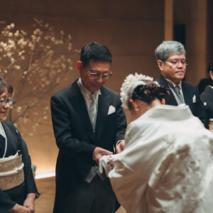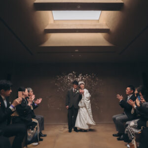 おふたりの決意を間近で感じ、思わず涙を流すご友人や安心したかのような微笑みをみせたご親族、みんなの表情が印象的でした。