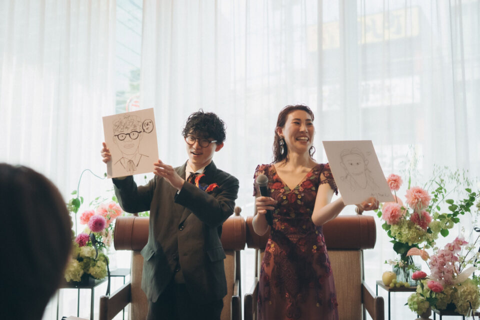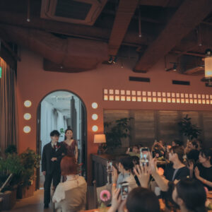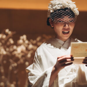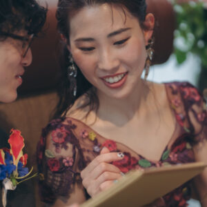 ゲスト全員に手紙で想いを綴り、挙式前に一斉にあけていただくオープンレターセレモニーや、おふたりもお互いに手紙を書き、なぜあなたと結婚したいと思ったのか、この先どんな存在であり続けたくてどんな夫婦になっていきたいか。そんな想いを誓いの言葉として贈り合いました。