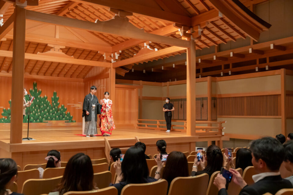当日はあっという間のお時間でしたが、ぜひおふたりの末永いしあわせを心より願っております。これから能楽堂もおふたりにとっても特別な場所ですね。ぜひイベントなどもご参加いただく度に、おふたりの結婚式の原点を思い返していただけたら嬉しく思います。