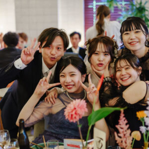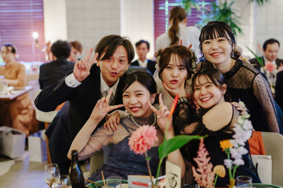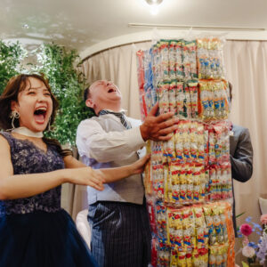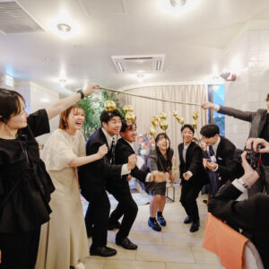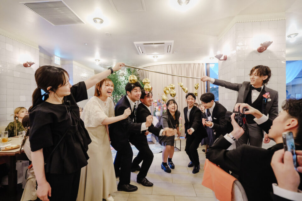 新郎さんの大好きな趣味をモチーフにしたアイテムやイベントも全員がとにかく楽しめるように、と集まるすべての人たちのしあわせの笑顔で溢れた