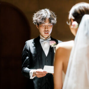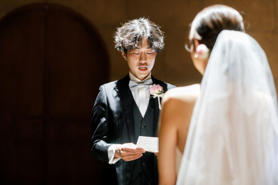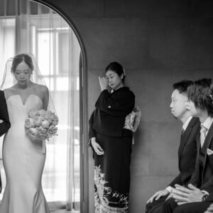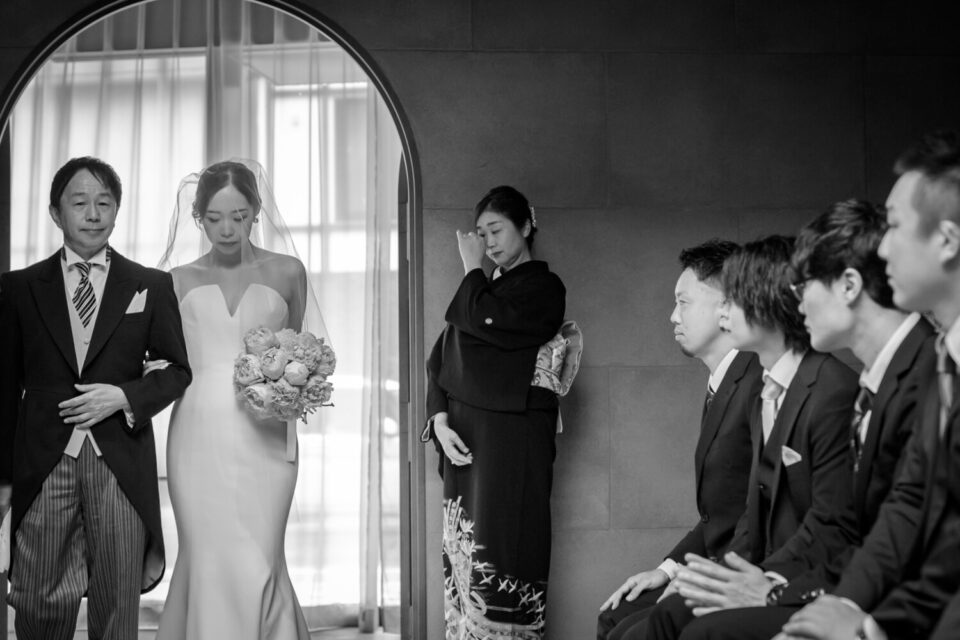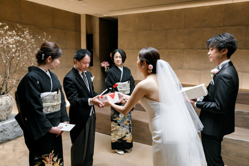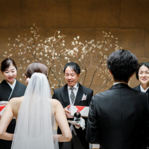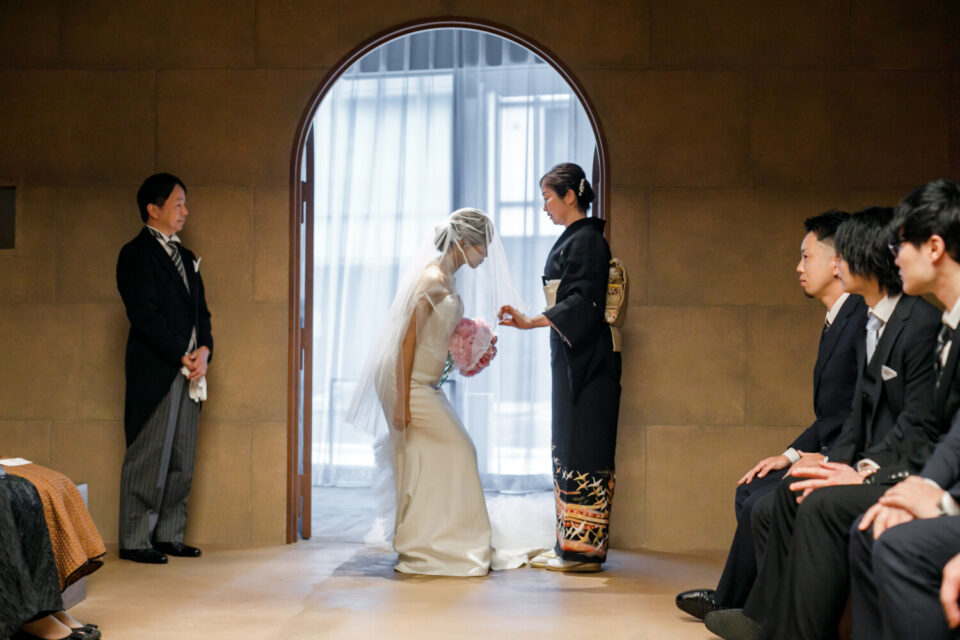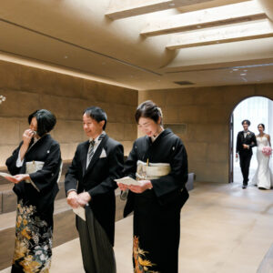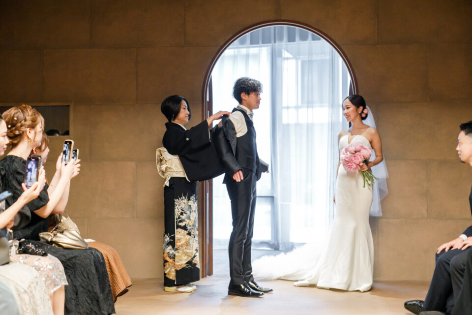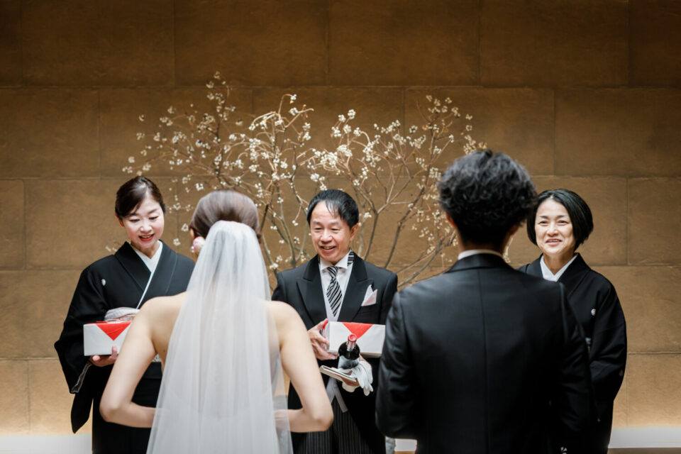 挙式前には親御様とのファミリーミートを設け、あえて対面前に手紙を読んでいただき、おふたりの想いを受け取った上でご対面のシーンを設けました。ご自身だけでなく相手の親御様にもお手紙をご用意され、「これからよろしくお願いします」そんな想いを込めました。