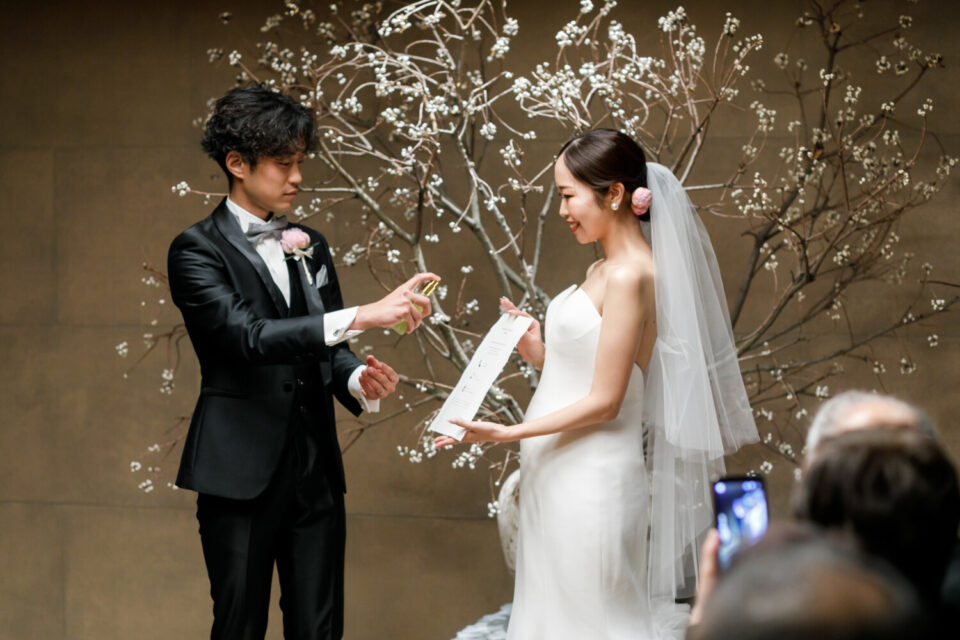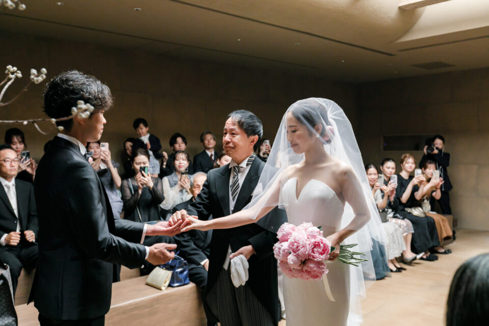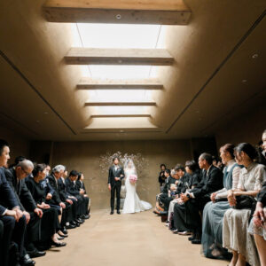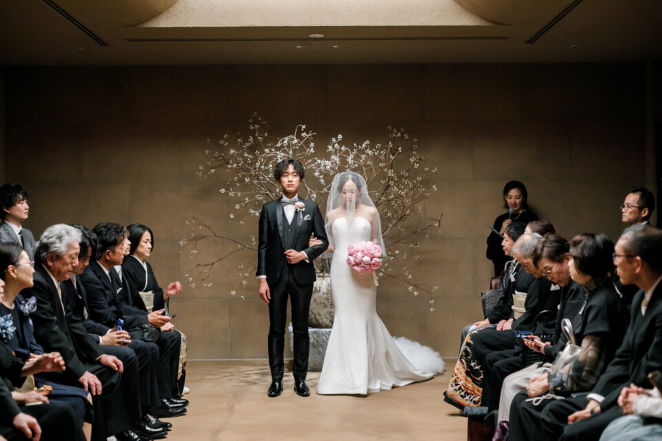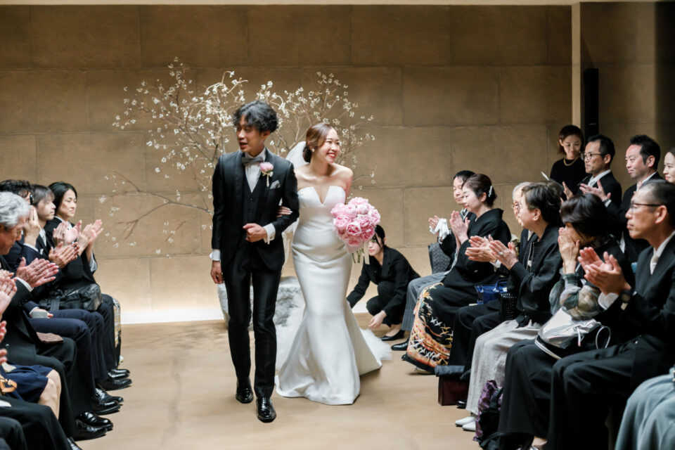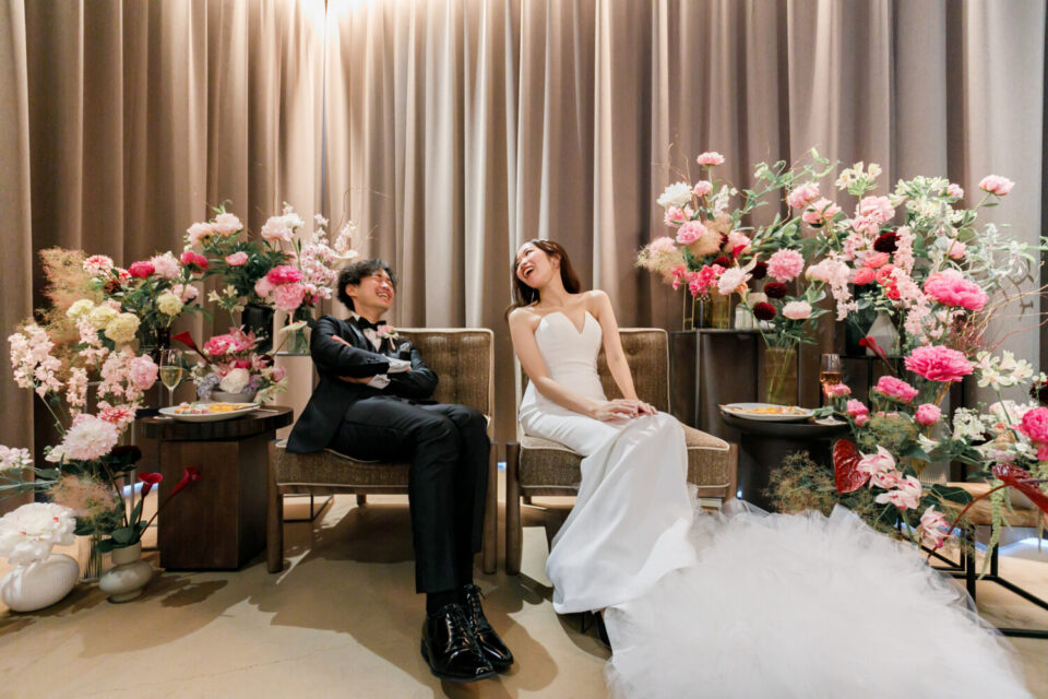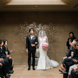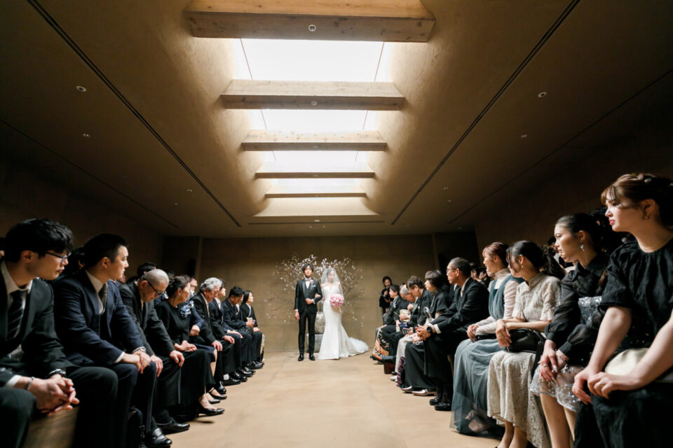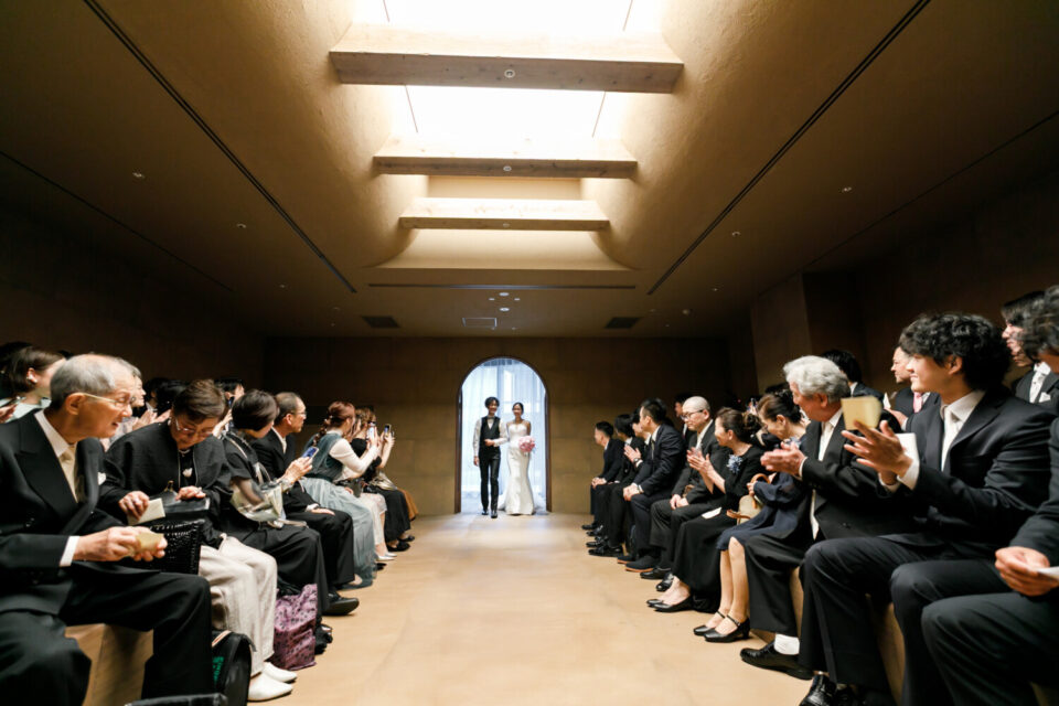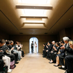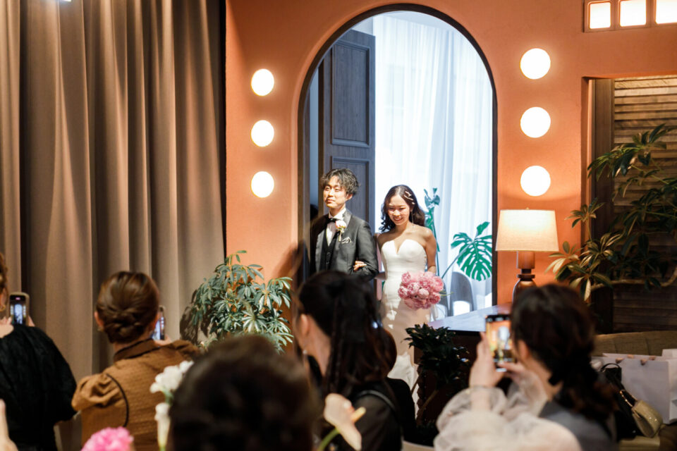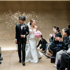 感謝の気持ちをしっかり届けながらも、純粋に大切なゲストとの時間も楽しみたい。そんな想いから、挙式と披露宴でメリハリをつけた時間をご提案しました。