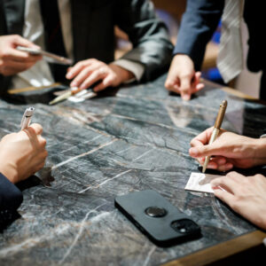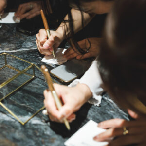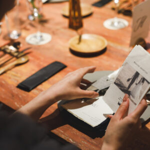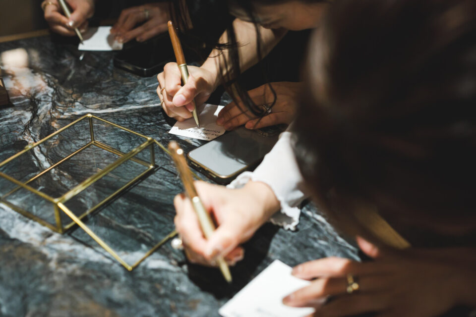 披露宴はゲストとの時間を大切にすべく、歓談の時間をメインに設けながらも、「心を通わせ合う」という想いから、アンサーレターのコーナーを設け、お返事を集めました。