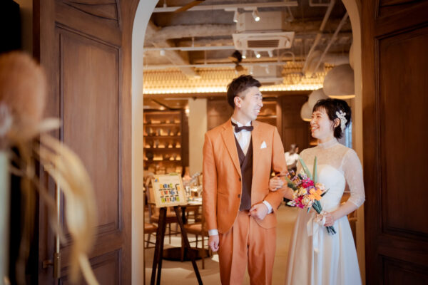 親族だけの結婚式とは別の日に、ご友人へのお披露目を兼ねた1.5次会を企画されたおふたり。コロナが落ち着いたタイミングでのパーティで、久々にお会いするご友人ばかりなので、テーマは「ただ気楽に楽しんで」でした!!
