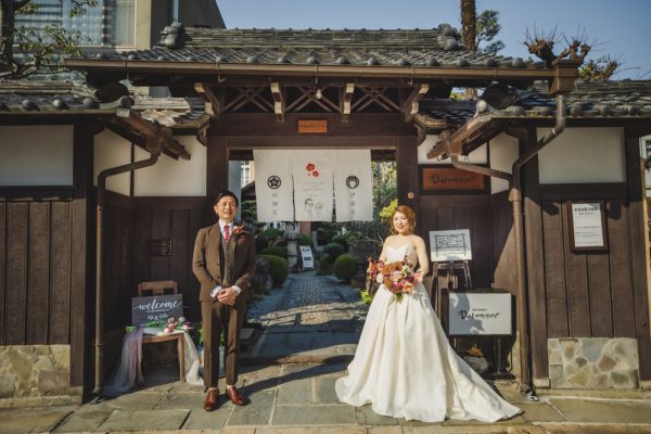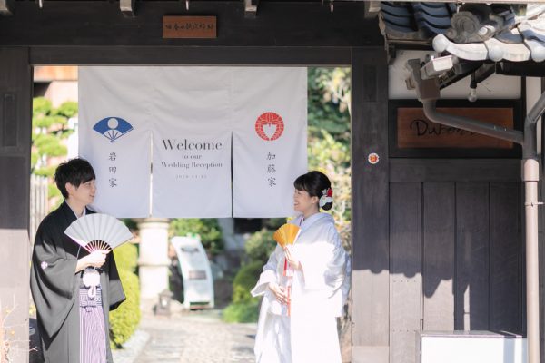 当日は両家の家紋が記された暖簾がゲストの皆様をお出迎え。