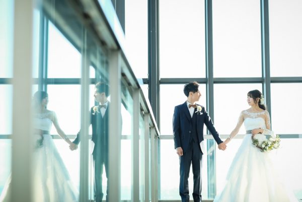 春の季節に前撮りをされたおふたり。和装は中村公園・洋装は庄内緑地公園にて撮影されました。桜と菜の花のコントラストで春らしい写真に仕上げました。