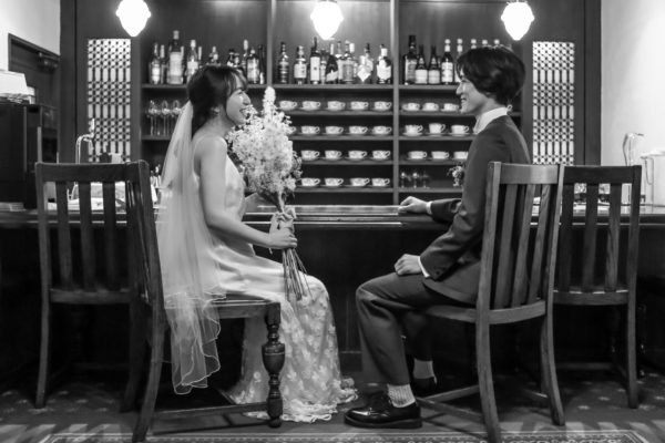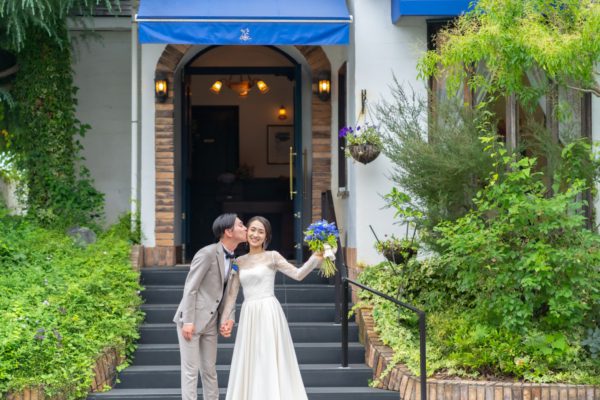 『これまで過ごしてきた人生の中で出会った、全ての人に感謝を伝えたい』、『人と人との繋がりや温かみを大切にしたい』というおふたりの想いから、テーマはヒュッゲになりました。デュボネならではの石畳人前式で、それぞれお互いに向けて作った蝶ネクタイとリストブーケを交換したりご親族のお子様にもたくさんお手伝い頂き、オリジナルでアットホームなセレモニーになりました。