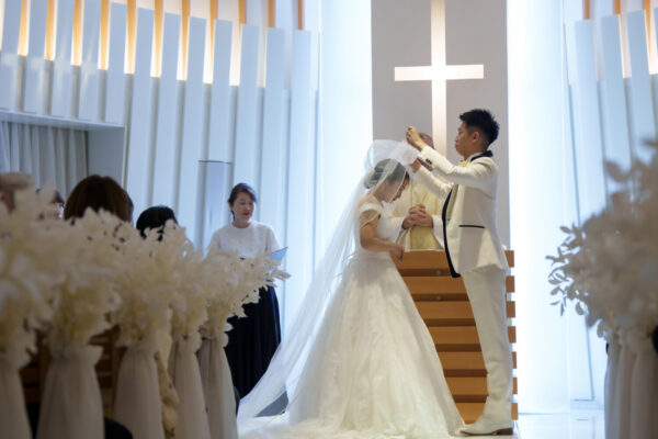 ご退場前には、おふたりの幸せな未来に向けて、お互いへ誓いの言葉を届けていただきました。出会ってから・そしてこれからどんな夫婦でありたいか未来に向けて、ふたりの心が通い合い、お互いだけに届けるべく、あえて黙読で行いました。